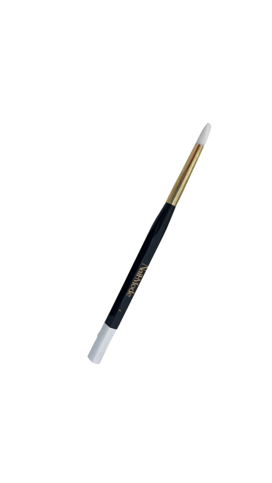 Our super elegant brush with its silicone tip and aluminum handle that makes it perfect is a multi-use brush that works to apply chrome, glitter, 3D effects, clean edges or excess product around the nail. Easy to clean.